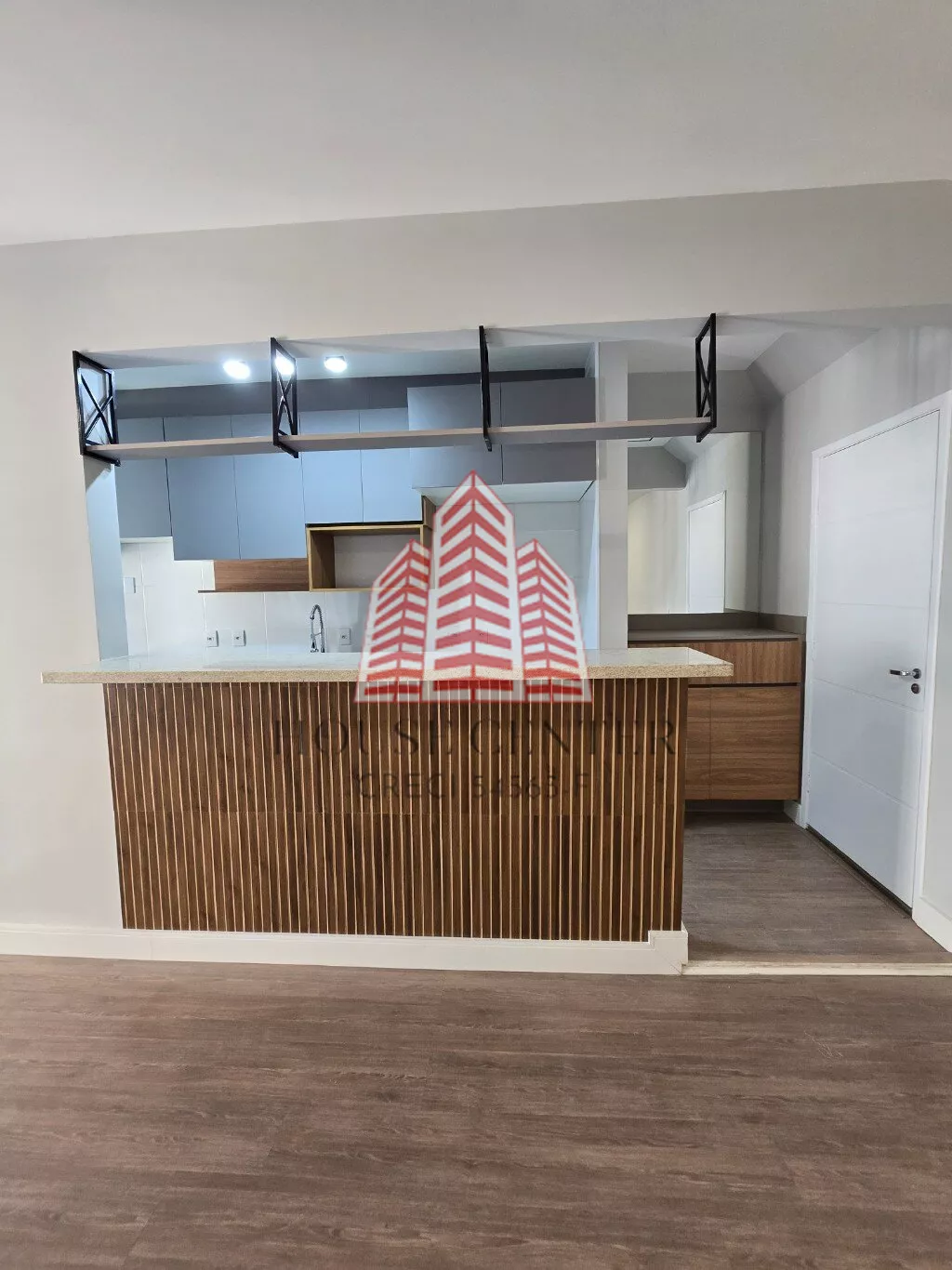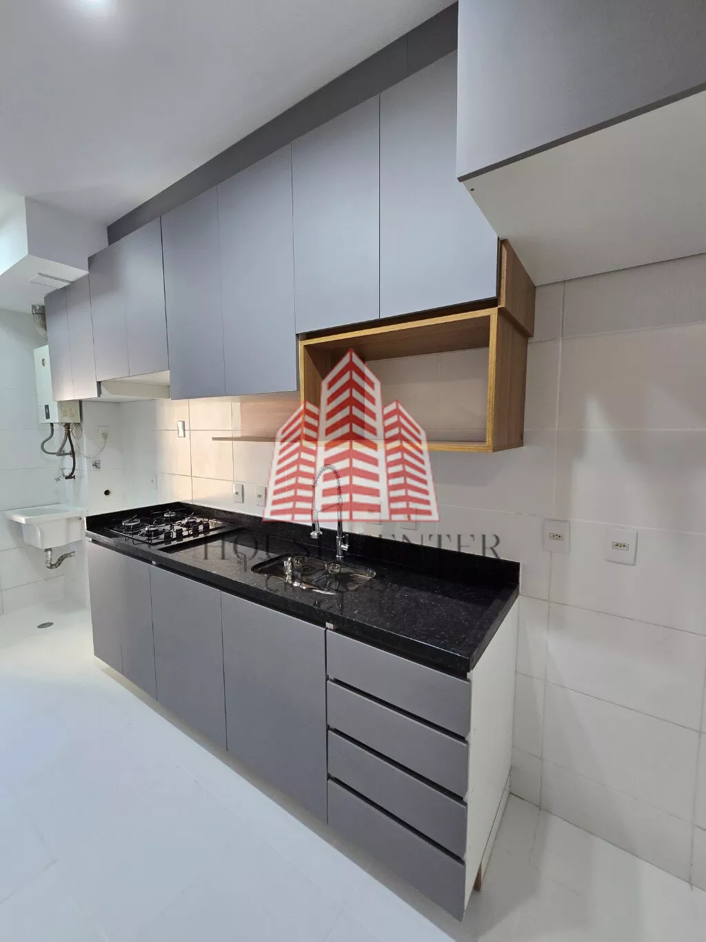 cozinha com armários planejados novos com cooktop, área de serviço com passagem para sacada, aquecedor a gás, banheiro social completo